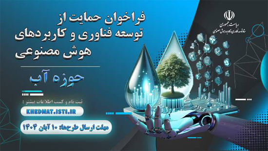 فراخوان حمایت از توسعه فناوری و کاربردهای هوش مصنوعی در حوزه آب به همت معاونت علمی ریاست‌جمهوری و با هدف کاربردی‌سازی هوش مصنوعی در حوزه آب اعلام شد.